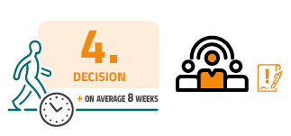 Step by step, we inform you about our process. We take you through the steps in outline, timeline* and cost to you. In total, the process - from intake to binding decision - takes an average of about 25 weeks.